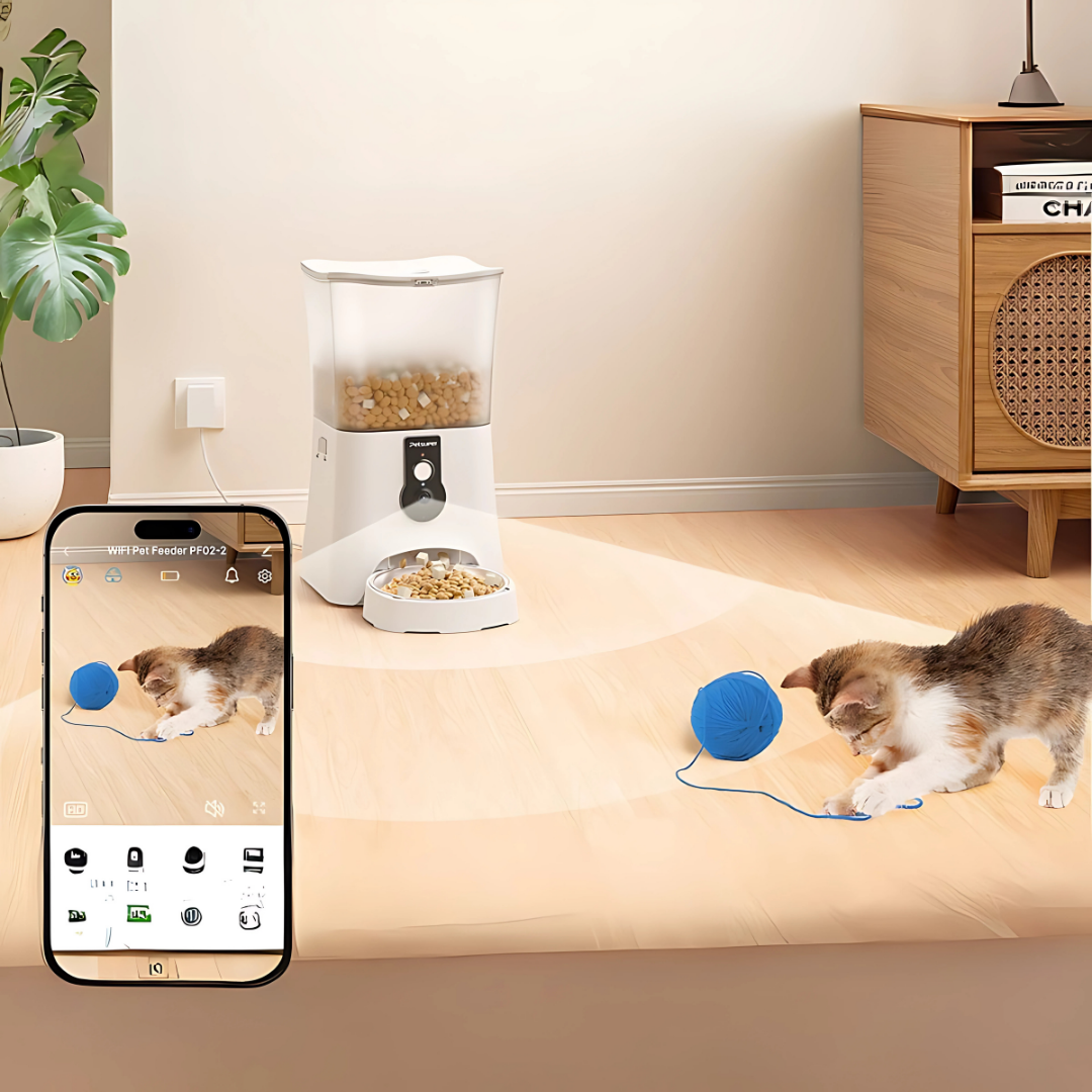 The Petsuper PF01-2 smart food dispenser is equipped with a 1080P HD camera that provides a clear and detailed image of your pet at any time of the day or night thanks to its night vision function. The 150° wide-angle lens allows you to monitor a larger area for better control of your pet's surroundings. In addition, when motion is detected, you will receive a notification on your mobile device.